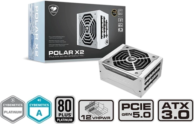 FONTE COUGAR POLAR X2 1050, 1050W, FULL MODULAR, 80 PLUS PLATINUM, CYBENETICS, PCIE GEN 5.0, WHITE